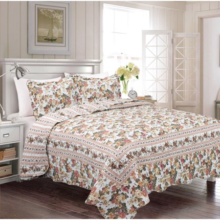 Fancy Collection 3pc King Bedspread Bed Cover Floral Off White Green Burgundy Gold Reversible